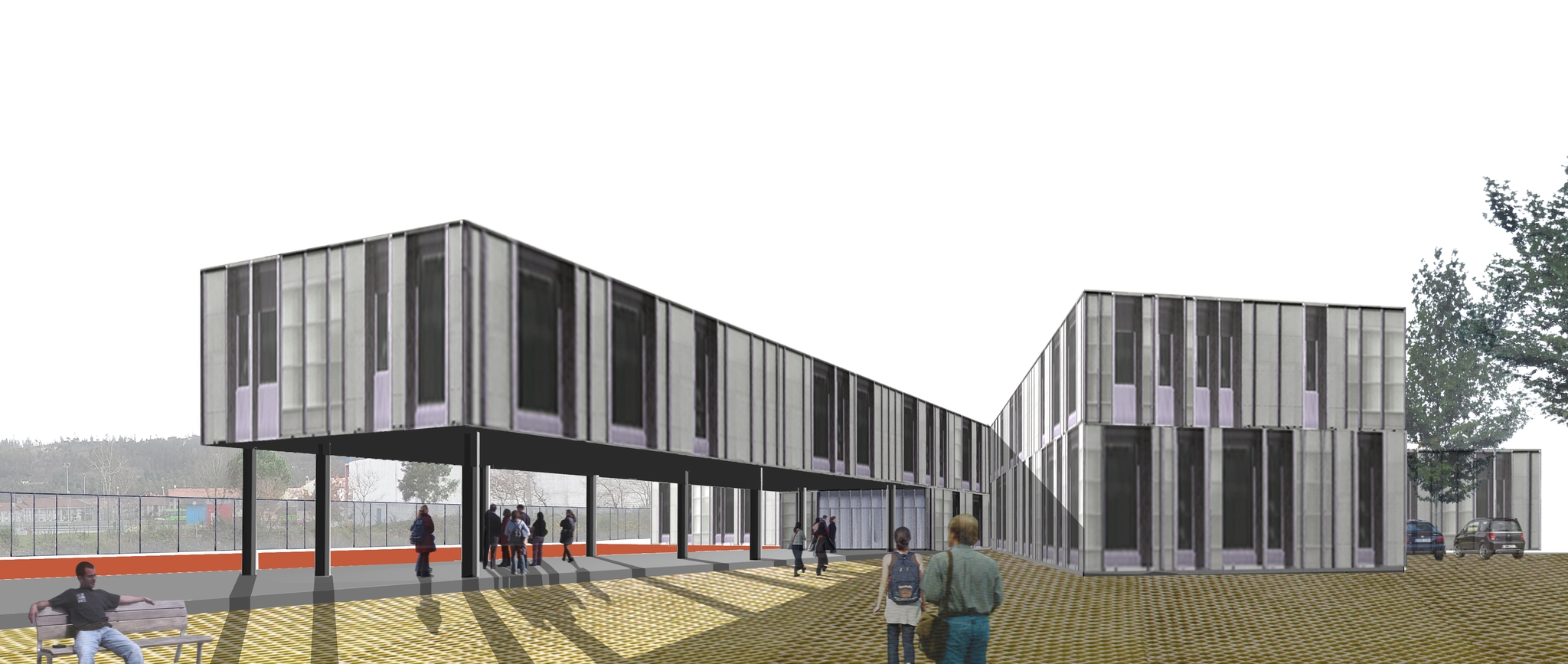 Se ha buscado un edificio que se adapte a la topografía del terreno y garantice una buena condición de iluminación de las aulas en general, así como un óptimo soleamiento del edificio, buscando la mayor eficiencia energética posible. Al mismo tiempo el uso escolar nos lleva a pensar que la mayor parte del programa se ubique a cota 0 para evitar en la medida de lo posible que los alumnos más jóvenes realicen desplazamientos a través de escaleras o ascensores.